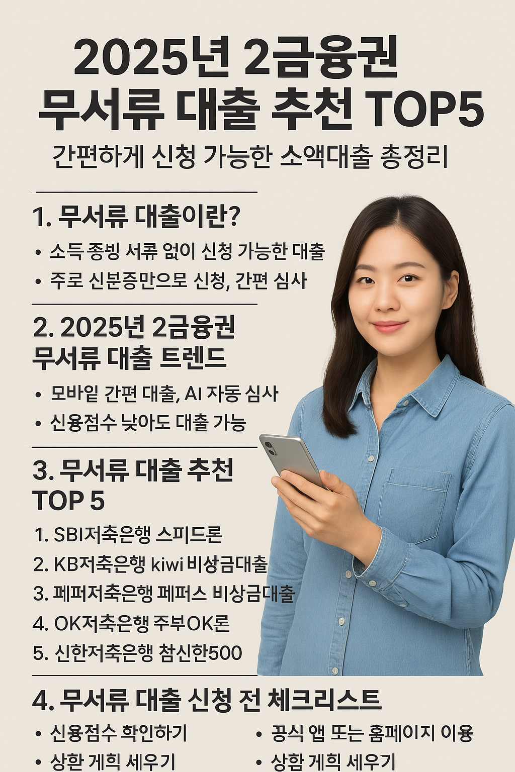 2025년 2 금융권 무서류 대출 추천 TOP5 – 간편하게 신청 가능한 소액대출 총정리