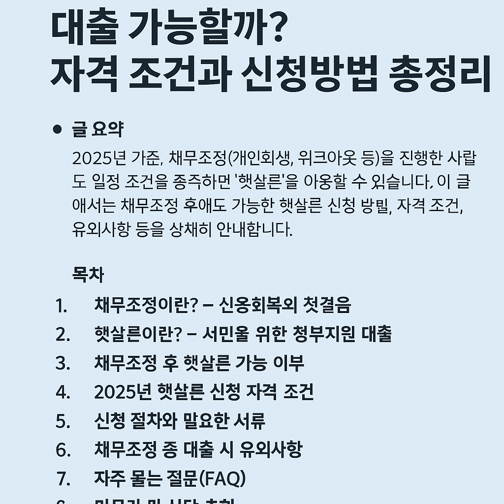 📝 2025년 채무조정 후 햇살론 – 대출 가능할까? 자격 조건과 신청방법 총정리